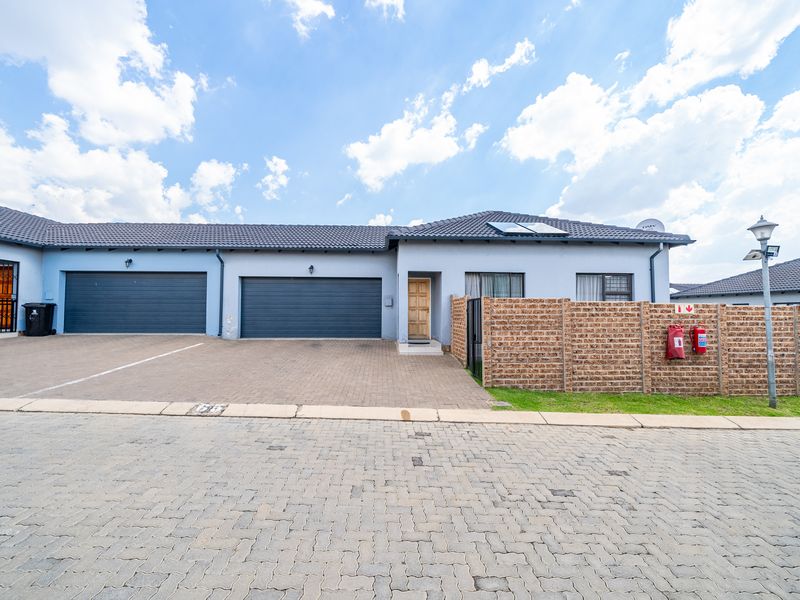 Relaxed family living with open-plan entertaining and generous front/back yards in Parklands, Boksburg's secure Weaversnest complex. Three beds, two baths, automated double garage.