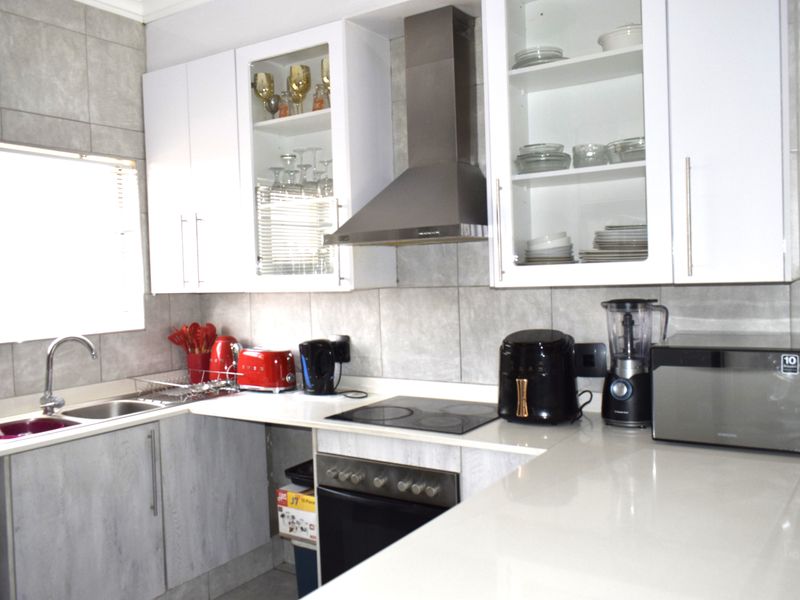 Family-focused estate living with easy access to Carnival Mall and Curro schools, private front-and-back garden and modern kitchen, 3 beds, 2 baths and secure covered parking.