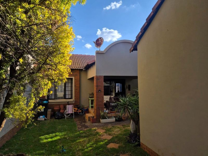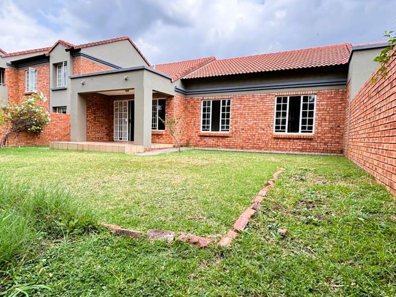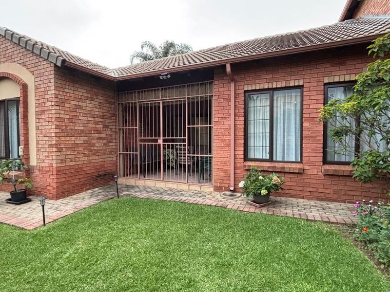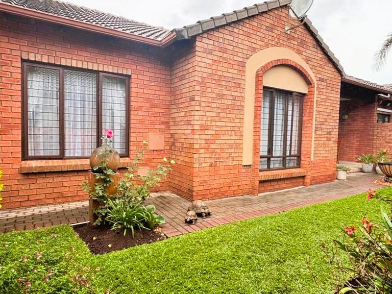 Enjoy relaxed living in Secure Eco Park Estate with parks, pool, tennis courts and communal braai — two patios with built-in braais and outside room; 2 beds, 2 baths, double garage.