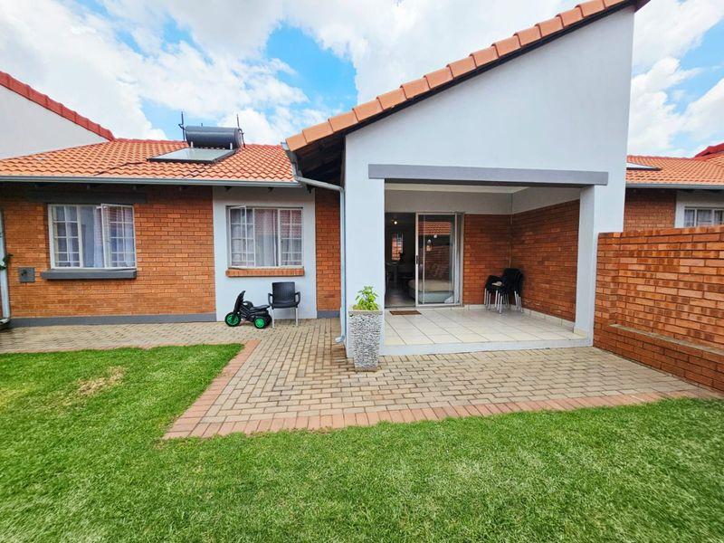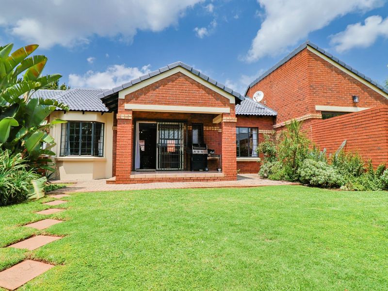 Relaxed family living with easy entertaining in a secure complex near schools, shopping and the N1/N14 — large corner garden, covered patio, three bedrooms, two bathrooms and double garage.
