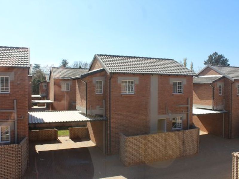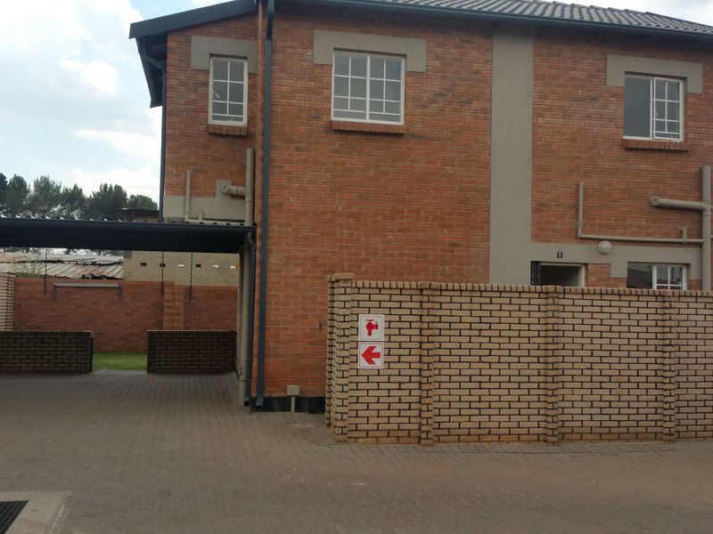 Easy-care modern duplex with open-plan living, granite-topped kitchen, covered patio and private garden; solar geyser, 24-hour security, near major routes. Two beds, two baths, double carport.