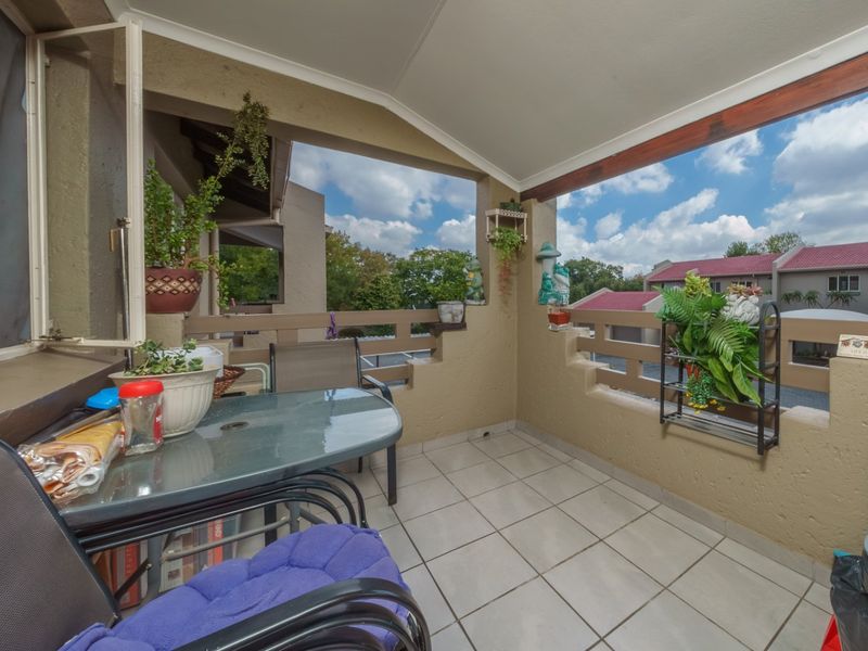 Lock-up-and-go living in a peaceful, sought-after complex close to schools, shops and 15 minutes from OR Tambo; sunny two-bedroom, one-bathroom unit with balcony, pool, braai and two parking bays.