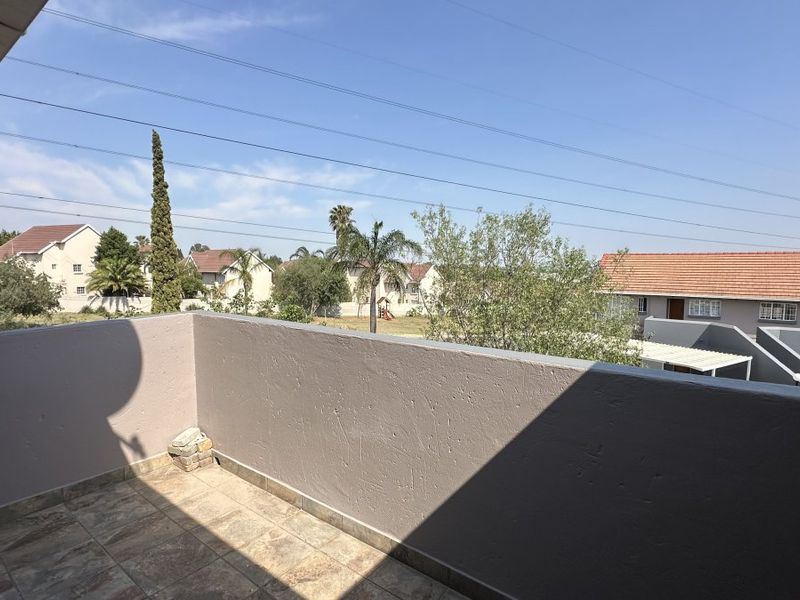 Relaxed, secure complex living in Eden Glen with access-controlled peace, clubhouse, pools and tennis courts. Bright open-plan townhouse with private balcony, two bedrooms and two bathrooms.