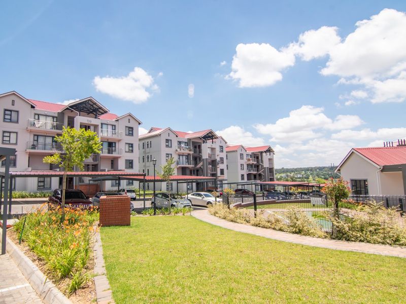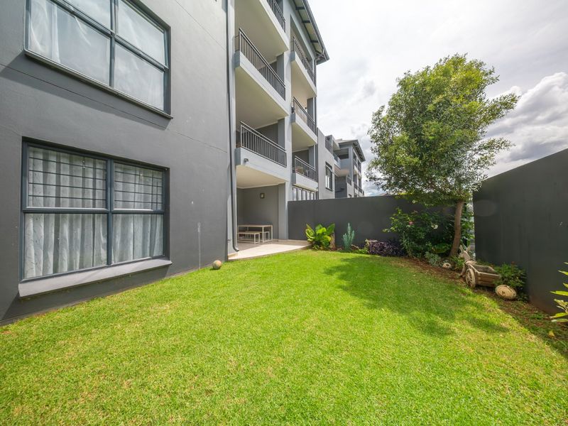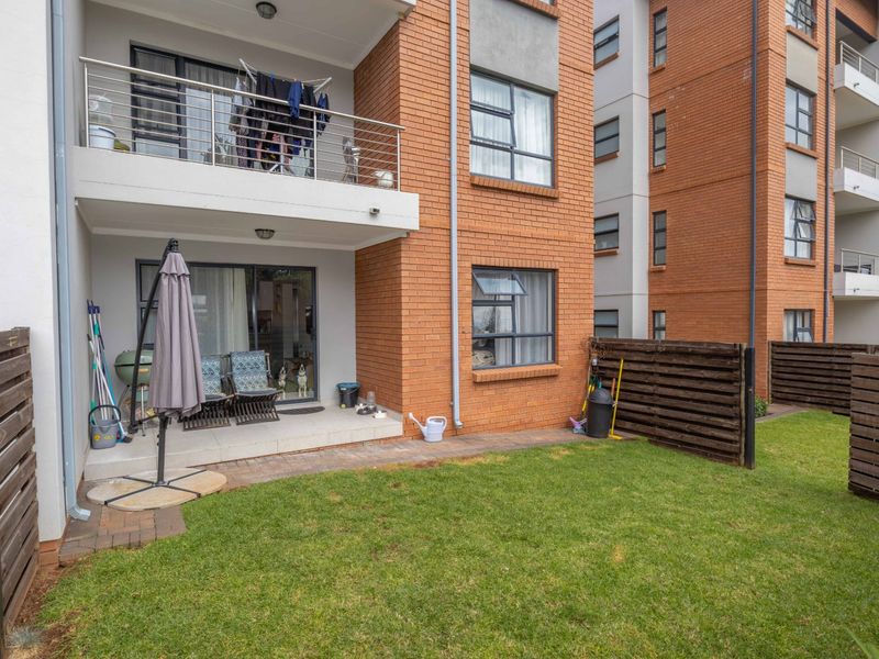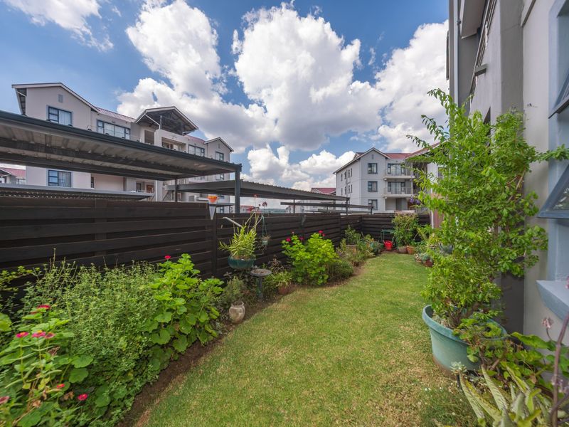 3-bedroom, 2-bathroom ground floor apartment in Fish Eagle View, Modderfontein; 104 m² with private garden and parking.