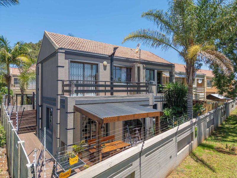 Townhouse in Eden Glen with open-plan living, three bedrooms, two bathrooms, garden, garage, and additional outside room.