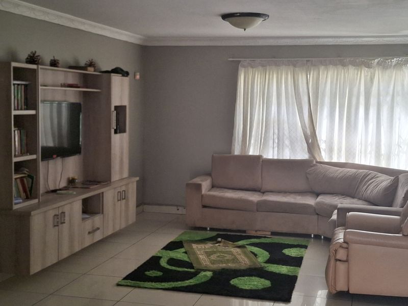 Relaxed family living with sunlit open-plan lounge and dining opening to a manicured garden in a quiet complex with pool. Ground-floor en-suite; four beds, three baths, single garage.