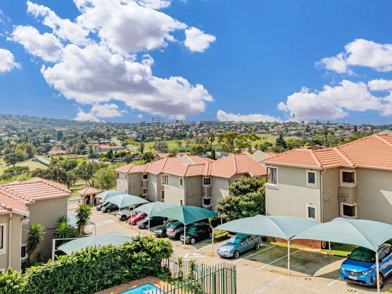 Enjoy relaxed entertaining on a balcony with built‑in braai in a guarded complex with pool and lapa, conveniently close to schools, malls and highways; two bedrooms, one bathroom, carport.