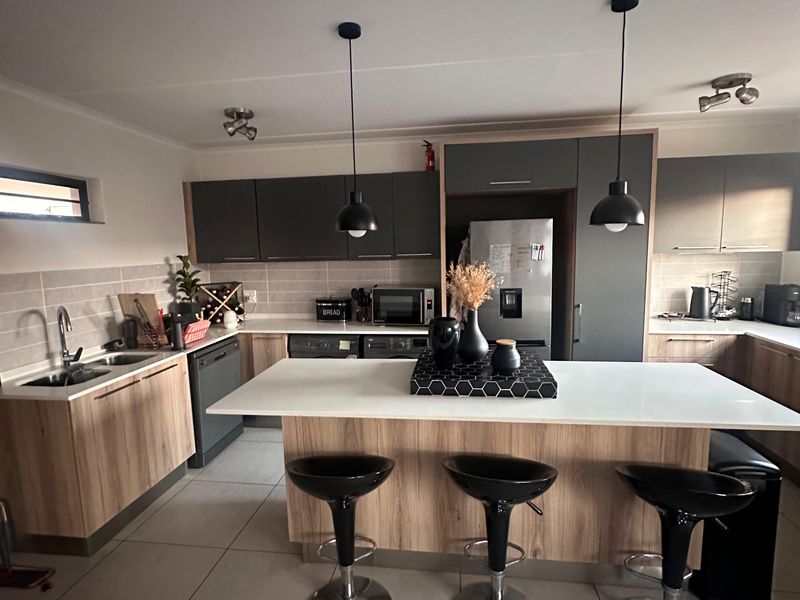 Enjoy secure estate living minutes from O.R. Tambo, shopping and highways, with a stylish kitchen island, enclosed pet-friendly garden and patio with built-in gas braai.