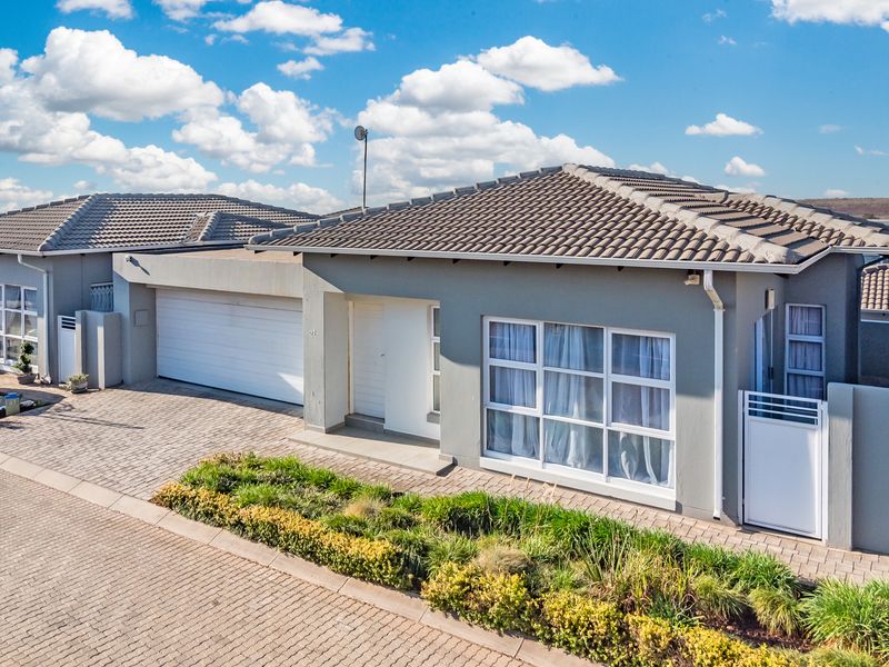 Hill-side, low-maintenance corner unit in Rangeview with admired range views, private enclosed courtyard and modern tiled interiors; two bedrooms, two bathrooms and single garage, near Curro School.
