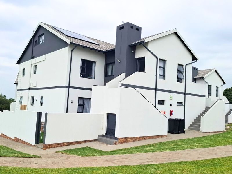 Resort-style first-floor apartment in Waterfall Manor Estate, minutes from Mall of Africa and Gautrain, with a loft bedroom offering dramatic views, energy-efficient solar geyser, and two covered carports.