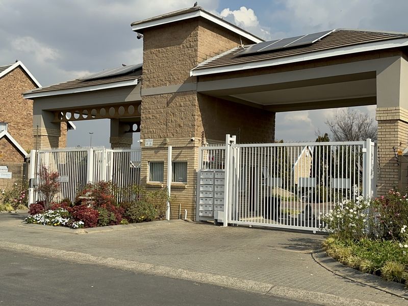Family-friendly living in Dunnottar, Nigel — close to schools and shopping, this open-plan townhouse boasts a private yard with braai area, three bedrooms, two bathrooms and five covered carports.