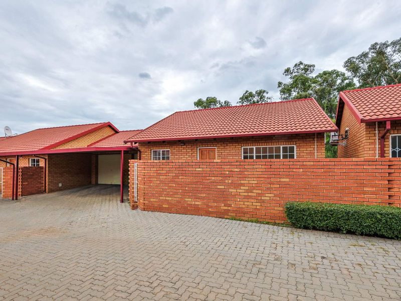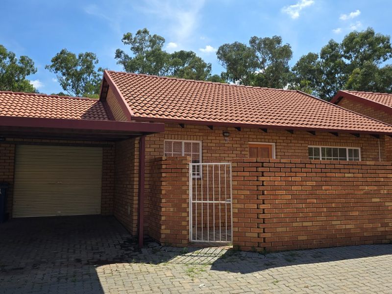 Relaxed suburban living near Wilgers Hospital and the N4, with a sunny patio, built-in braai and wrap-around garden — two bedrooms, one bathroom and single garage.