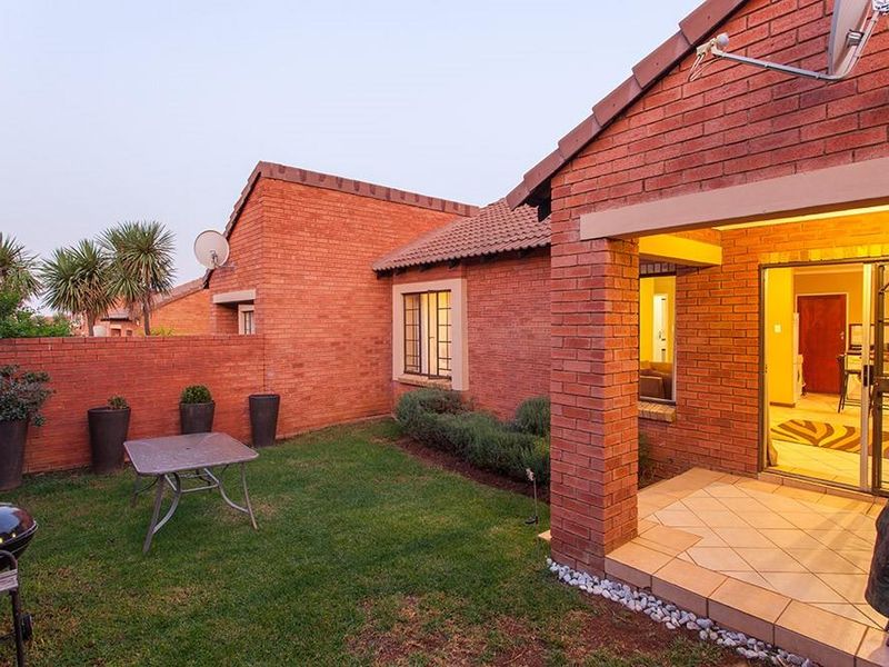 Entertainer's lock-up-and-go lifestyle in a secure Pretoria complex, with a covered patio and built-in braai overlooking a private walled garden. Two bedrooms, two bathrooms and double garage.