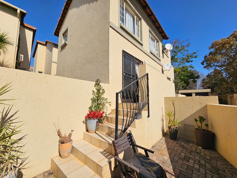 Family-focused estate living with 24-hour security in Bougainvillea Estate, Montana Park; private garden fountain entrance, covered braai patio and communal pool access. Four bedrooms, 2.5 baths.