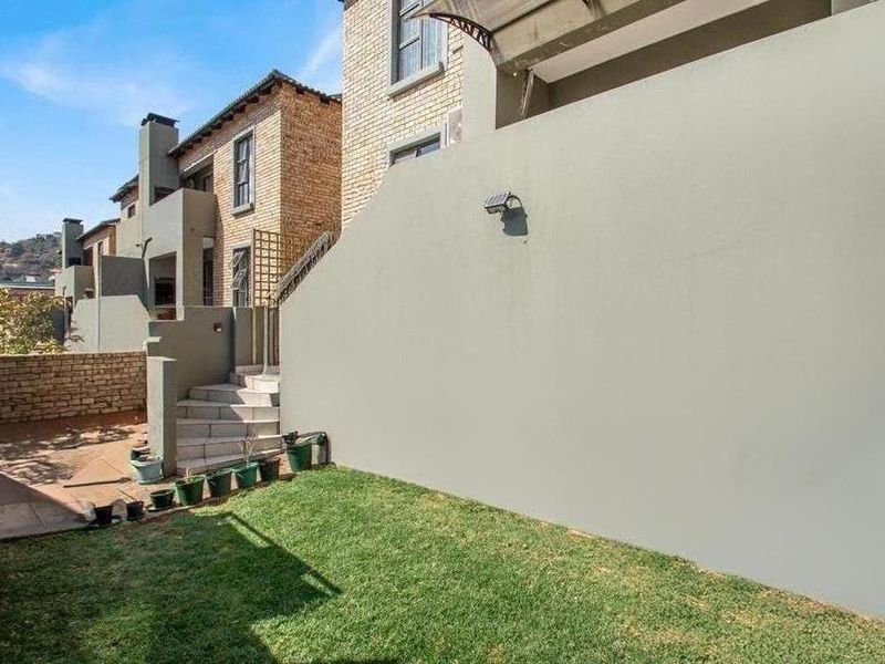 Bordering Kloofendal Nature Reserve, this pet-friendly Helderkruin townhouse offers a covered patio and private lawn — tenant in place until Feb 2026; two bedrooms, one bathroom.
