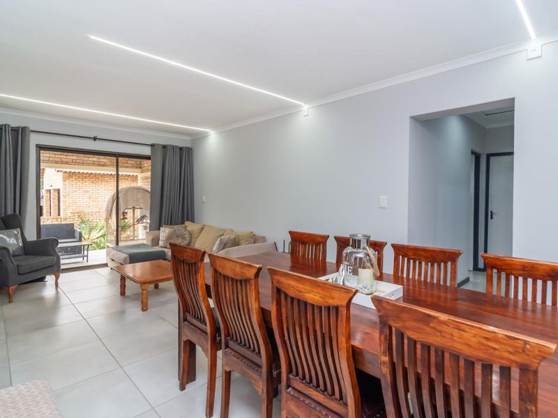 Renovated entertainer’s sanctuary in a complex close to schools and malls — covered patio with built-in braai, irrigated garden and master balcony with Sundowner views; 4 beds, 3 baths, double garage.