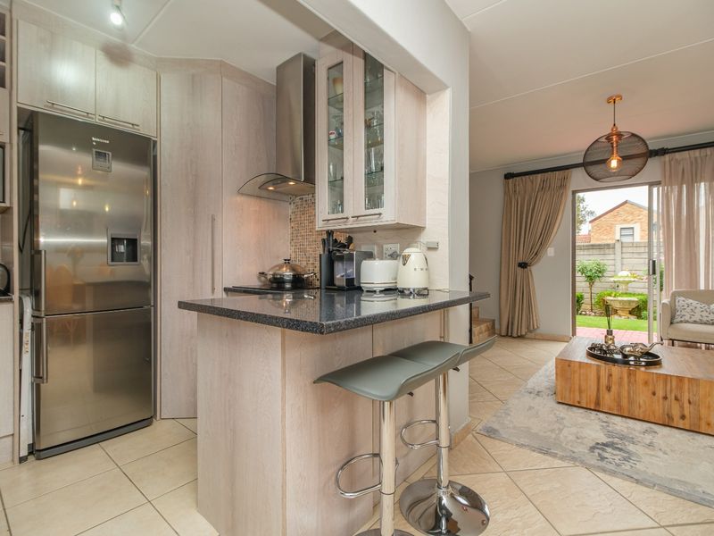 Relaxed entertaining lifestyle in a secure gated complex with 24-hour security, private garden and lapa with braai. Upstairs two bedrooms, 1.5 bathrooms and double garage.