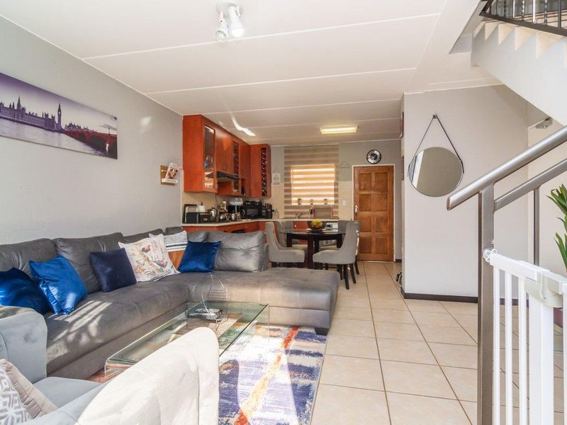 Relaxed family living in a pet-friendly complex, walking distance to Curro Wilgeheuwel, open-plan kitchen flowing to wrap-around garden and private upstairs bedroom with views. Three beds, two baths, double garage.