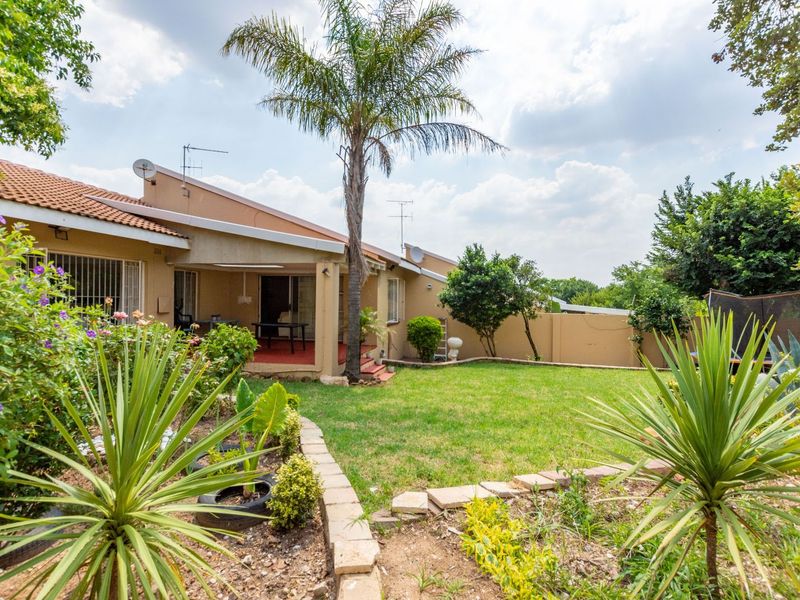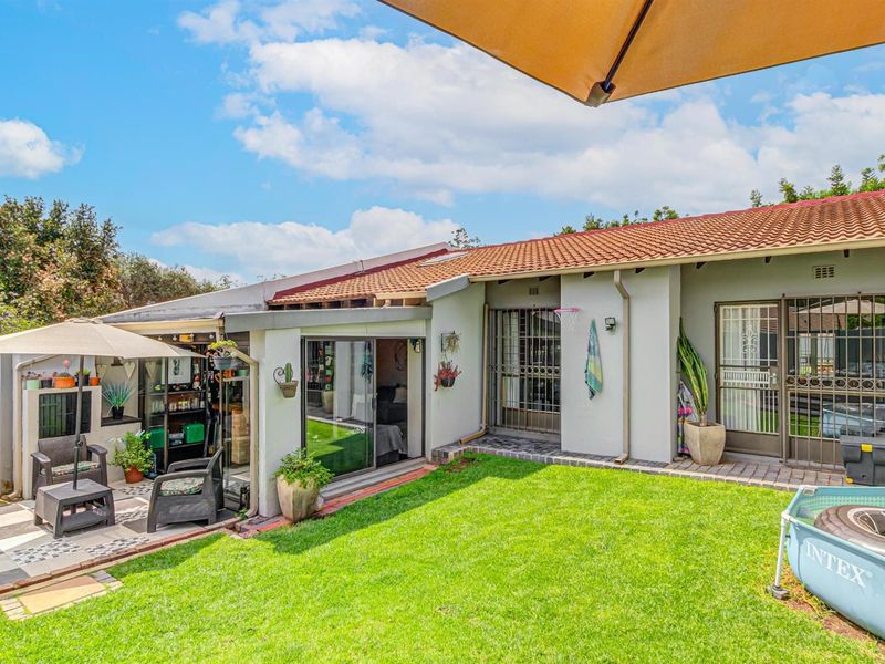 Serene, secure estate living with quick access to Bryanston schools, shops and country club. Private irrigated garden and covered patio; three bedrooms plus flexible fourth, two bathrooms.