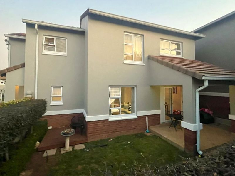 Seamless indoor-outdoor entertaining with an enclosed patio and built-in braai in a secure, 24-hour guarded complex — three bedrooms, two-and-a-half baths, double garage.