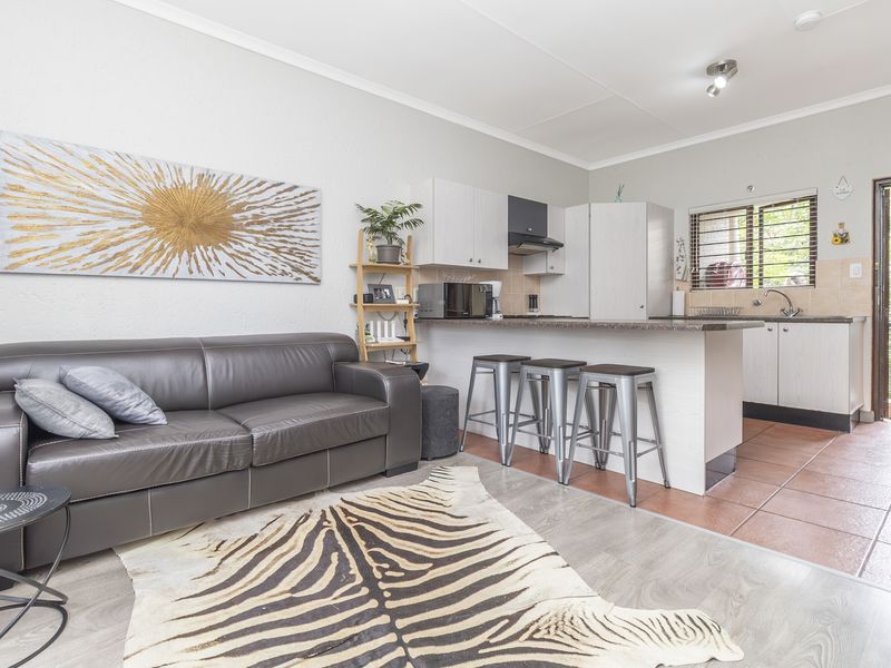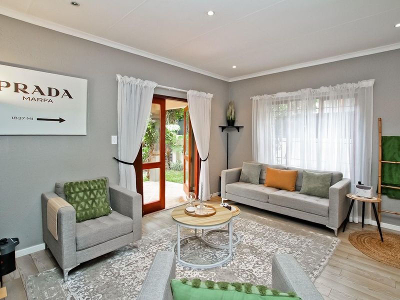 Live urban convenience with tranquil estate vibes in Sandton—two blocks from Gautrain and minutes to Sandton City. Entertain in a lush garden with sprinklered patio; two bedrooms, two bathrooms.