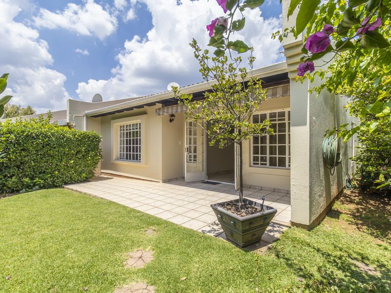 Live city-edge yet tranquil in Sandton's shadows, steps from Gautrain — entertainer's home with manicured private garden, covered patios, three bedrooms, two bathrooms and double garage.
