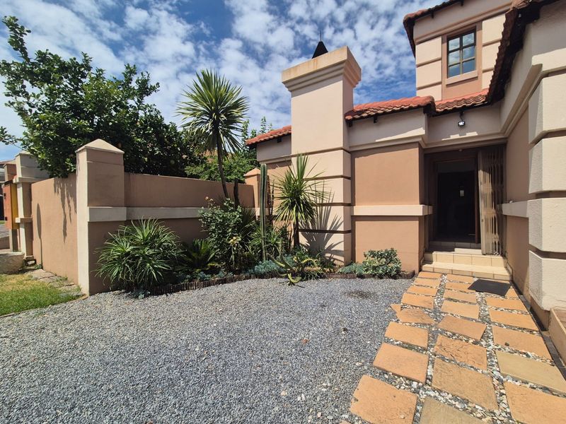 Private fairytale garden and modern wooden kitchen in a safe, secure complex with communal sparkling pool, lapa and playground—three bedrooms, two bathrooms and double automated garage.