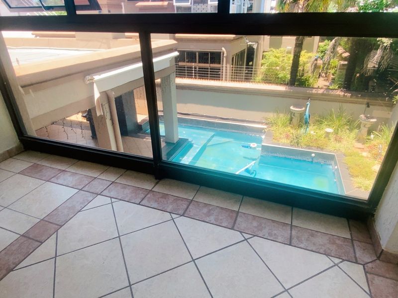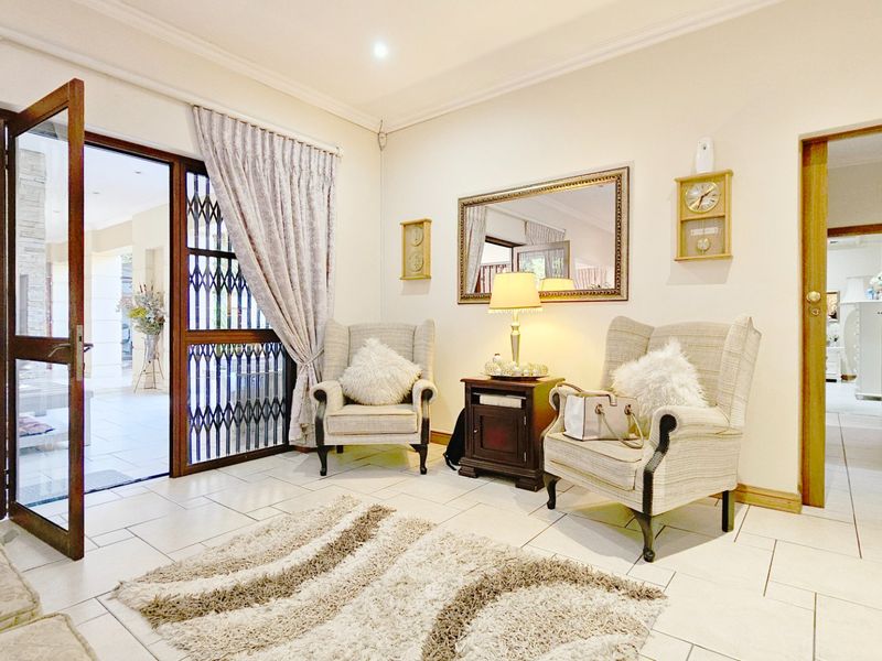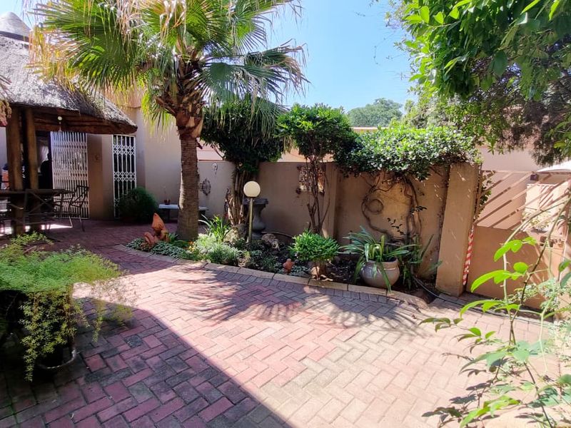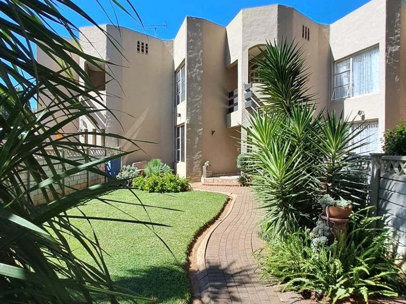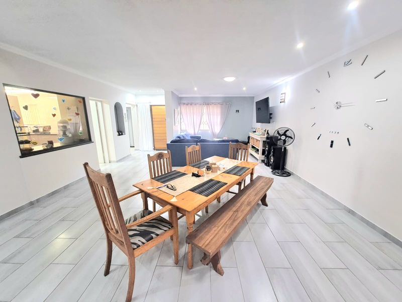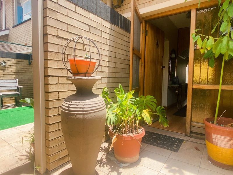 Entertainer's garden with built‑in braai and double electronic garage in a well‑located suburban setting; immaculate, spacious rooms with en‑suite plus guest toilet — three bedrooms, two bathrooms.