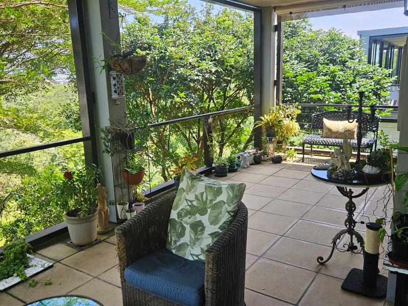 Live among treetops with coastal views in sought-after Dunkirk Estate, enjoying forest walks, communal pool and a large wrap-around patio — three-bedroom, two-bath top-floor apartment.