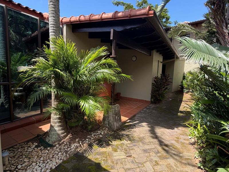 Resort-style living in Zimbali Estate, combining elegant interiors with forest-edge tranquility; main suite opens to serene forest views. Three bedrooms, two bathrooms, covered parking.