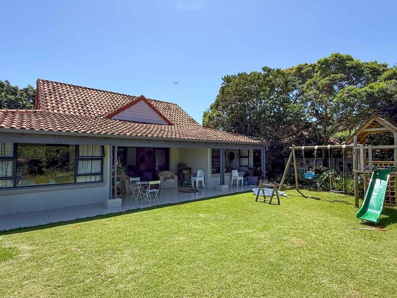 Resort-style, secure living in Simbithi Eco Estate near Ballito and King Shaka Airport, featuring two separate outdoor entertainment areas and single-level convenience — three bedrooms, three bathrooms.