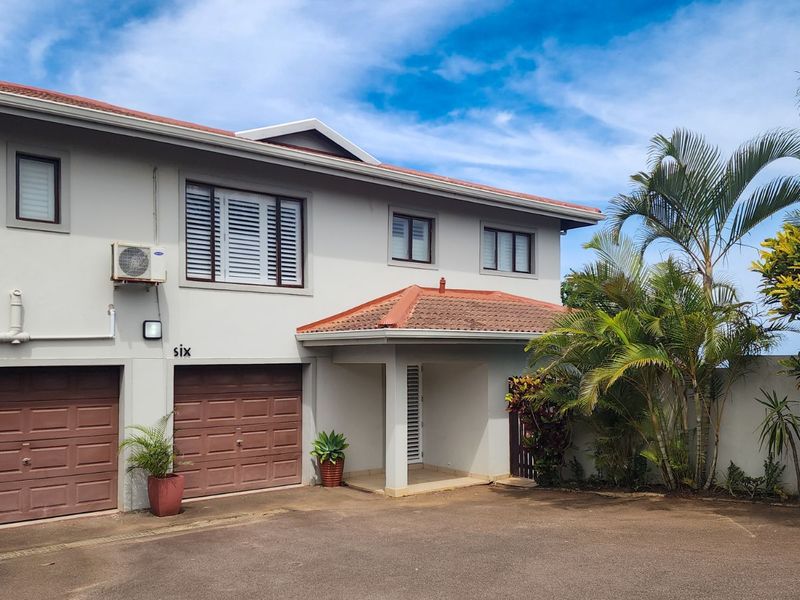 Resort-style living in Zimbali Estate, combining elegant interiors with forest-edge tranquility; main suite opens to serene forest views. Three bedrooms, two bathrooms, covered parking.
