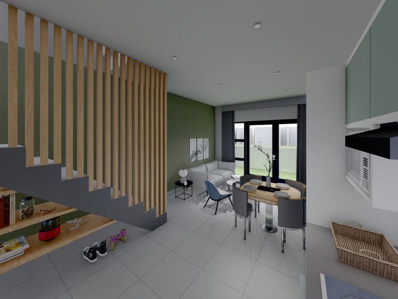 Urban convenience in the vibrant heart of South Africa, steps from schools and transport; renovated townhouse with open-plan living, landscaped garden and pool, two bedrooms, two bathrooms, covered parking.