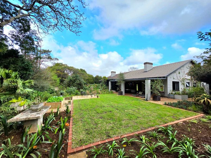 Peaceful family living in Edgecliffe Park, Gillitts, steps from estate greenery; open-plan lounge flows to covered patio and private walled garden, modern granite kitchen, three bedrooms, single garage.
