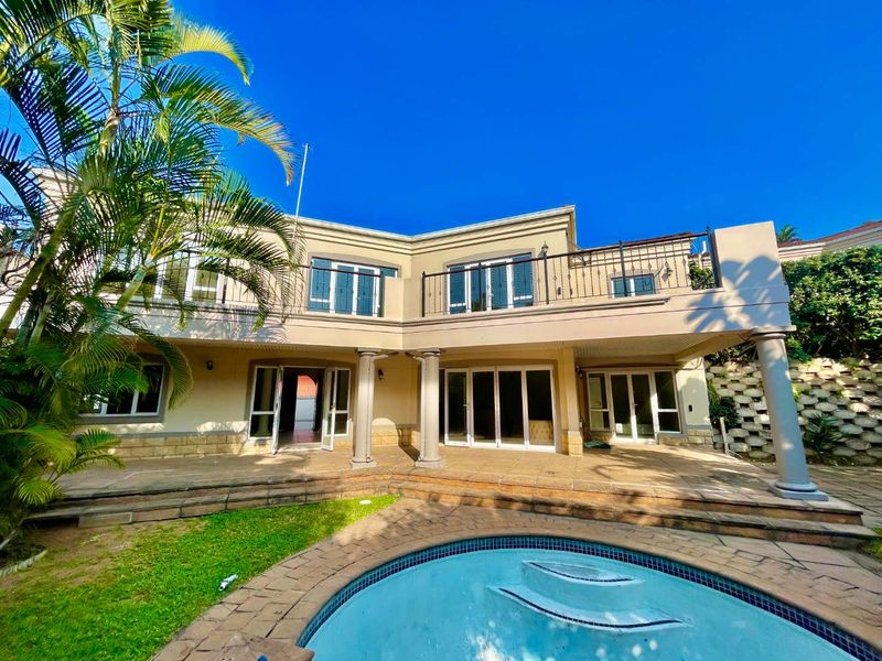 Walk-to-village coastal living in Umhlanga, steps from the promenade and cafés, private pool with safety cover and covered entertainment deck with pizza oven; three bedrooms, 2.5 baths, single garage.