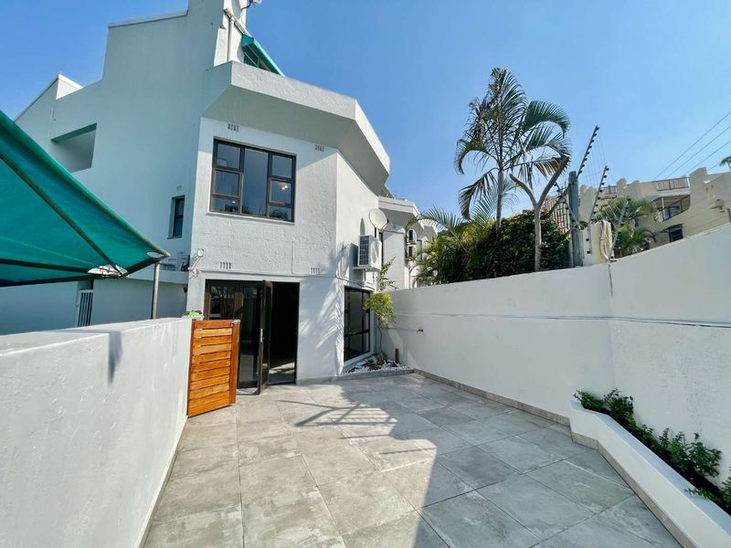 Sun-soaked seaside living in Umhlanga Rocks, just 500m from the beach — bright garden townhouse with pet-friendly courtyard, loft bedroom ready for en-suite and covered parking.