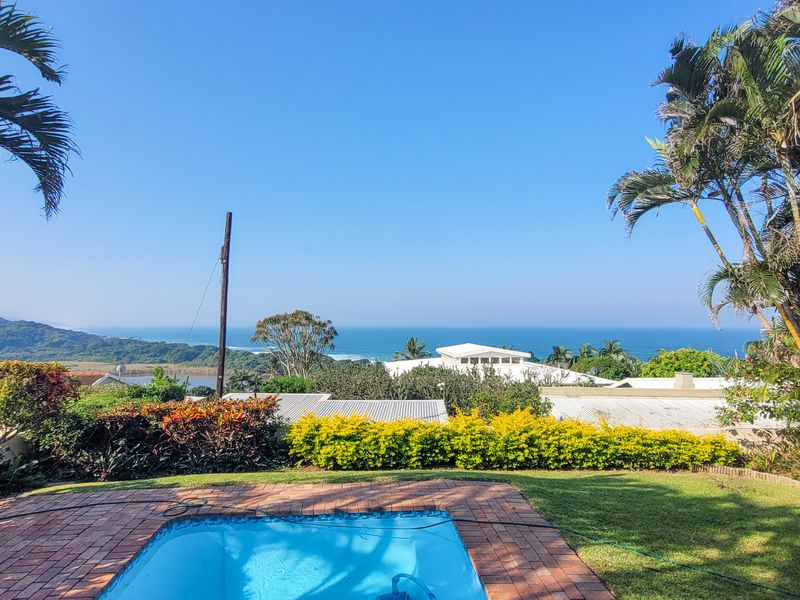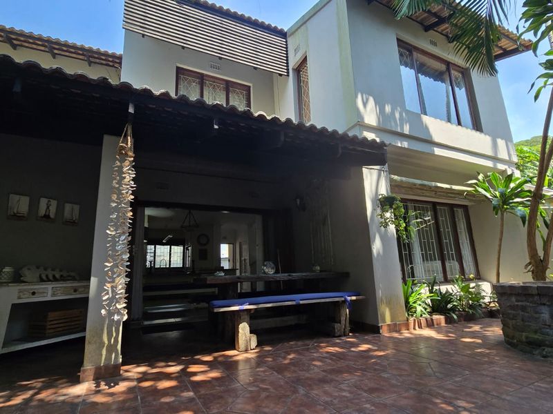 Escape to a North Coast conservancy retreat at Zinkwazi Beach—lagoon views, indigenous forest walks, and private patio with garden and pool; four-bedroom layout with tandem garage.