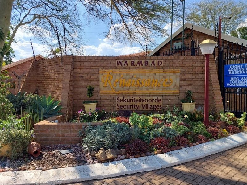 Tranquil retirement living in Renaissance Village, Bela-Bela — cul-de-sac setting beside natural bush with private landscaped garden and water feature. Two bedrooms, 1.5 bathrooms and single garage.