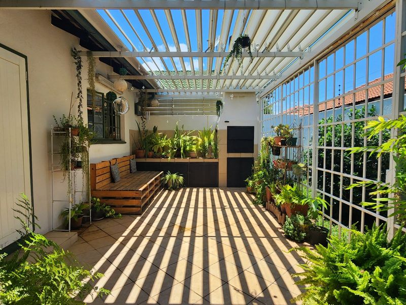 Secure lock-up-and-go family living with relaxed entertaining in a private garden and covered patio with built-in braai, close to schools, shops and highways; three bedrooms, two bathrooms, lock-up garage.