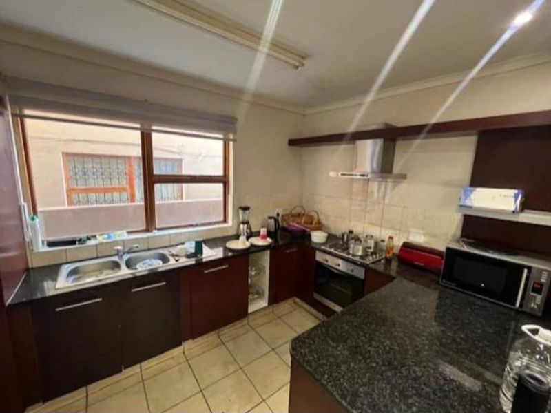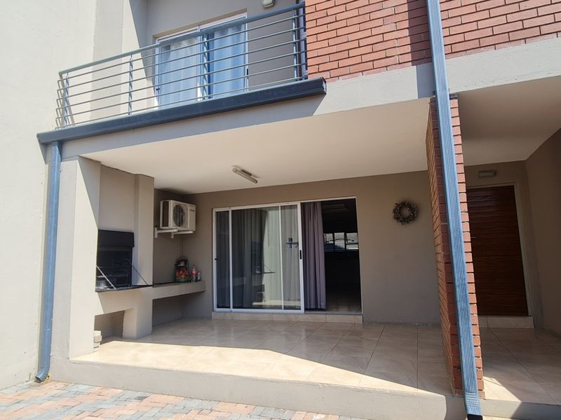 Entertainer's townhouse in a secure, well-maintained complex — open-plan living flows to a modern kitchen and balcony with built-in braai. Three bedrooms (two ensuites), double garage.