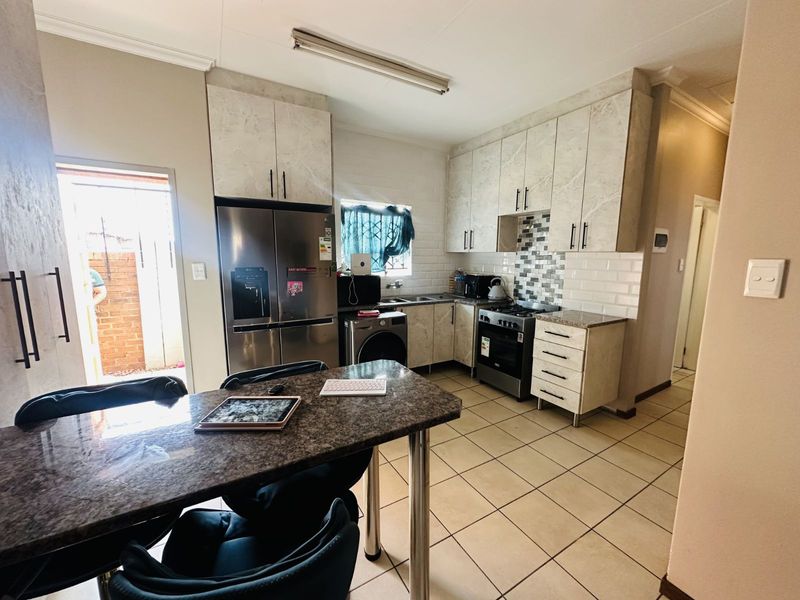 Enjoy peaceful, community-focused living in Secunda's secure complex, with a private garden and braai area, open-plan kitchen, three bedrooms, two bathrooms, double garage.