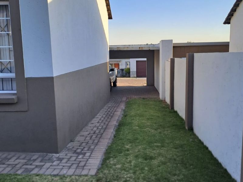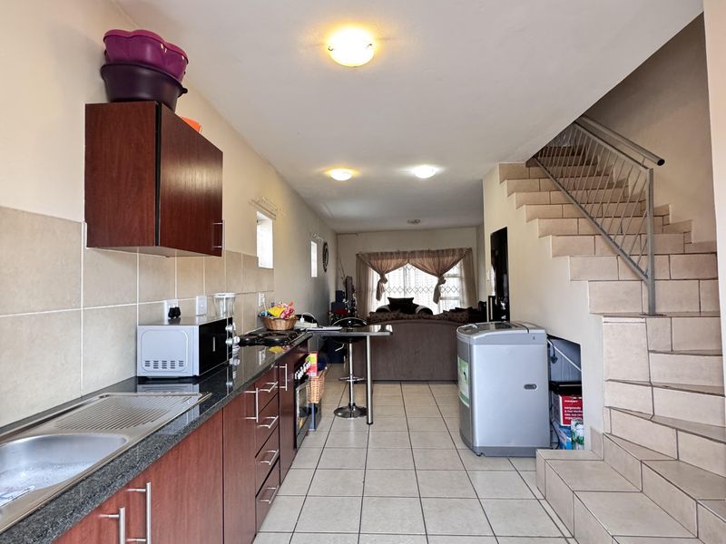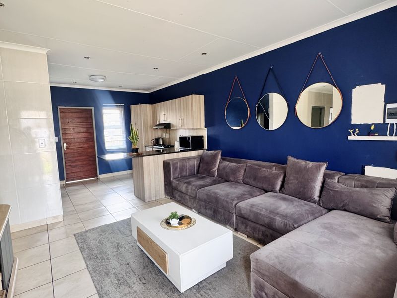 Family-focused living in Khayalami Estate, Tasbet — close to schools, shops and the N12. Open-plan fitted kitchen, small private yard, three bedrooms, two baths and double garage.