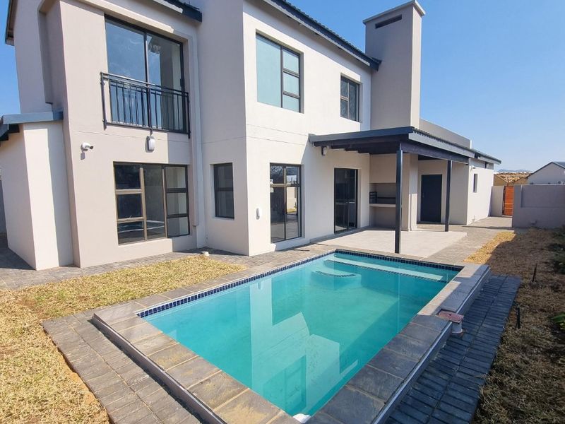 Bushveld country-living in La Camargue, framed by the Magaliesberg with expansive green belts; enjoy a braai stoep and swimming pool, open-plan granite kitchen, four bedrooms, 3.5 baths, double garage.