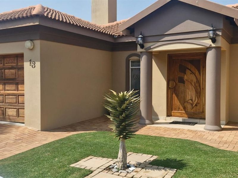 Effortless family living in Klerksdorp's popular security estate with indoor braai and private garden, open-plan lounge and kitchen, three bedrooms, two bathrooms and double garage.