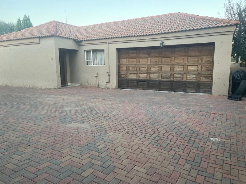 3-bedroom townhouse in Neserhof, Klerksdorp. Features include 2 bathrooms, garage, pet-friendly garden, and secure complex.