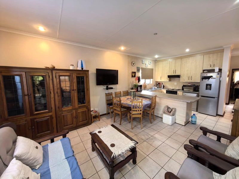 Family-focused easy living in a secure, serene neighborhood with open-plan kitchen and TV room, separate dining, small low-maintenance garden and borehole. Three bedrooms, two bathrooms, double garage.