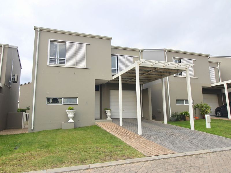 Relaxed lakeside living in Somerset Lakes Estate — end-of-cul-de-sac corner duplex with private garden and undercover patio with built-in braai; three bedrooms, 2.5 baths and single garage.