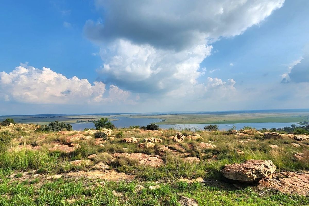 Escape to mountain living near Bronkhorstspruit Dam with panoramic dam views and tranquil surroundings. Fully serviced 1,639m² stand with rocky garden, paved driveway, prepaid electricity and gated access.