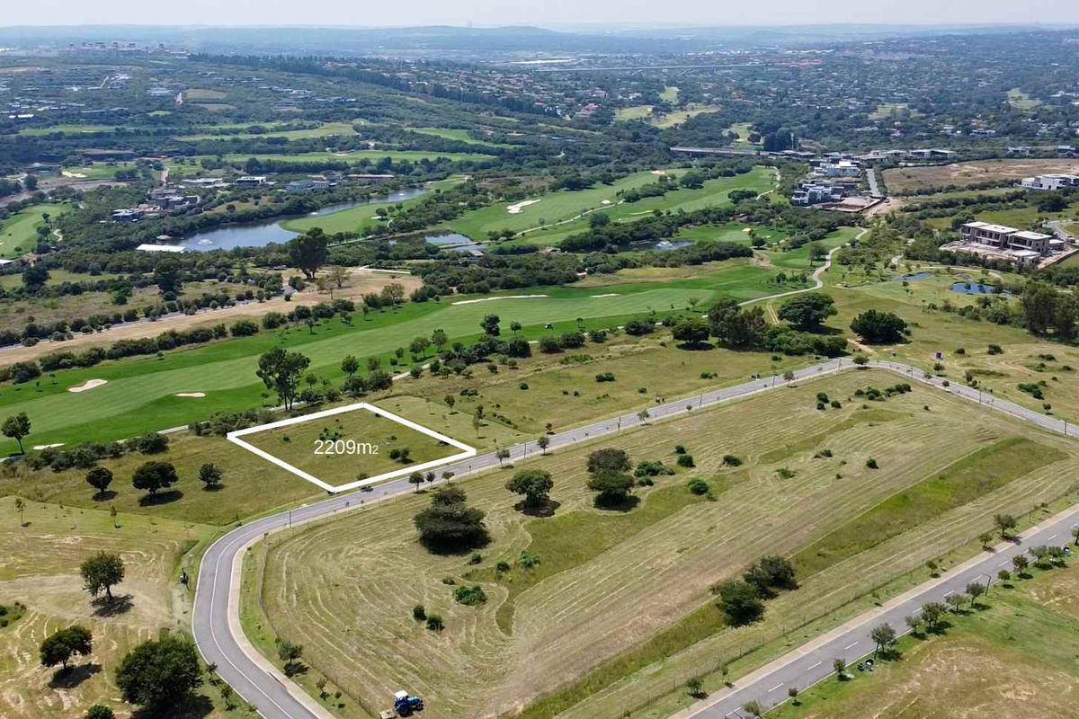 Live resort-style in Steyn City’s The Woods with panoramic views over the Jack Nicklaus 6th hole and clubhouse, sheltered by mature greenery — rare 2,209 m² stand.