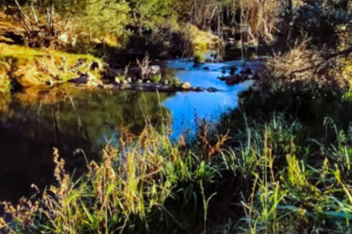 2 hectares of land in Rietfontein, ideal for a homestead or business, with riverfront access and gentle slope.